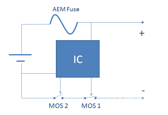 其次,PTC+fuse将会是通过UL2054的低成本解决方案。在大电流充电情况下,仅靠单一元件比较难通过UL2054的全部测试,因为每个元件都有一些优点和不足。第一,常用的PTC。因为充电电流很大,为了保证在快速充电而温升很高的情况下不动作,选择的规格必然会到12066A/7A。选择如此大的规格,锂电池在通过UL2054的LPS测试时就会碰到困难,因为很难在60秒内将电流限制在8A以下。第二,常用的保险丝(fuse)。最大的优点是对于温度不敏感,可以选择5A规格,≤5A规格保险丝极有利于锂电池通过UL2054的LPS测试;但是因为本身对于温度不敏感,不具备过温保护功能,所以比较难通过UL2054的6V/1C和6V2C的滥充测试项目。第三,三端保险丝,虽然能够解决过温保护的温度,但是因为电流规格更大,高达10A/12A,也过不了LPS测试;而且成本很高。第四,有的厂商采用双IC方案,虽然效果比较好,但是成本比较高。如果将PTC和保险丝(fuse)相结合,首先依靠对温度不敏感的5A保险丝(fuse)轻松通过LPS、短路等测试项目;然后再依靠12066A/7A的PTC通过6V/1C和6V2C的滥充等测试项目,整个方案成本很低。