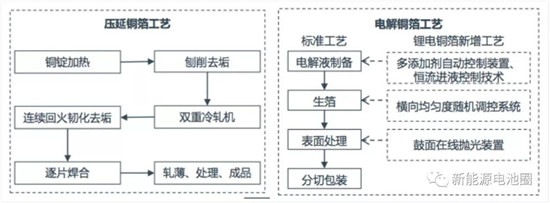锂电里一般只区分压延箔和电解箔,下面是压延箔和电解箔的生产工艺的对比。