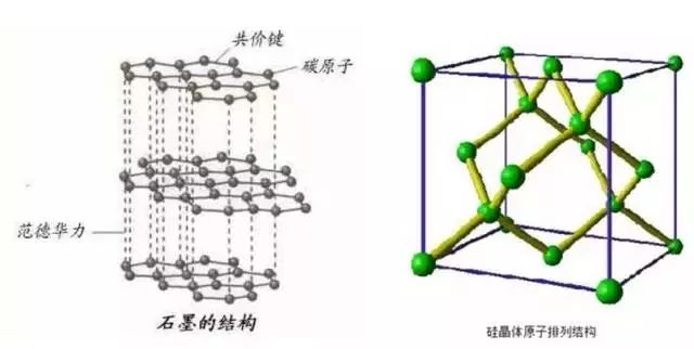 硅的结构和石墨层状结构不同(如下图),其储能机理也与金属材料类似是通过与锂离子的合金化和去合金化进行的,其充放电电极反应可以写作下式: