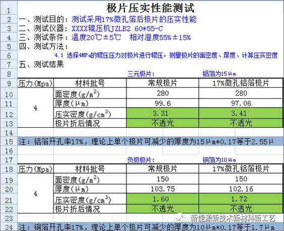 同等规格的箔材,孔隙率17%的微孔箔,重量减少17%;同等面密度,正负极压实提高(部分材料填充进入孔隙间)。