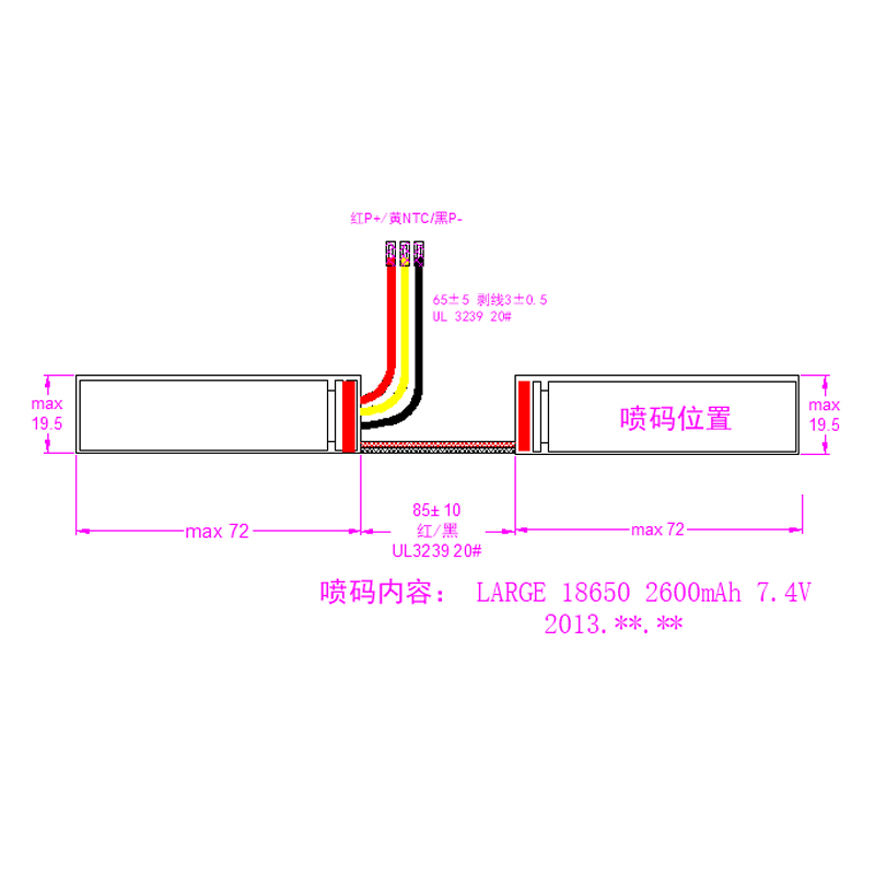 电池放电:放电截止电压:6.0V 放电电流:520mA(标准), 2600mA(最大)